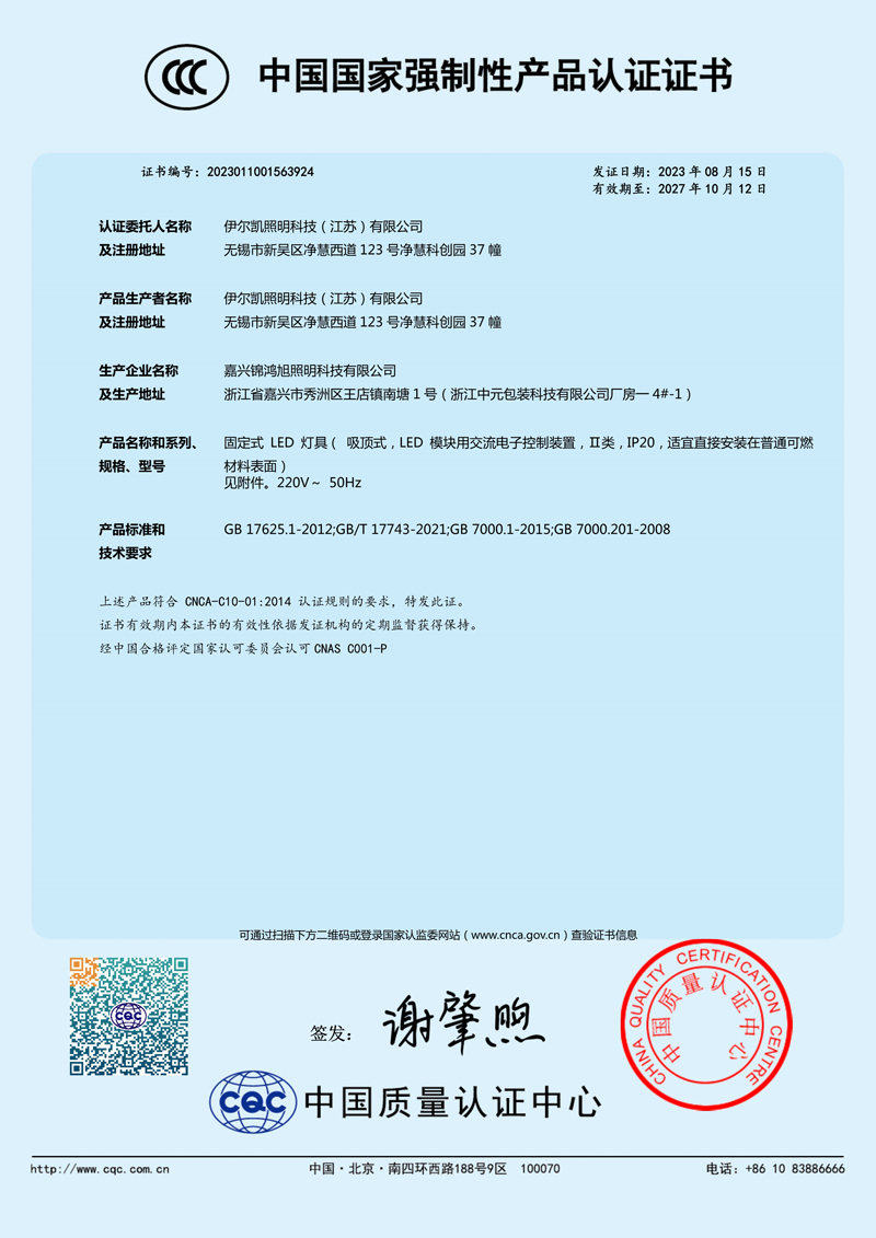 公司現有室內燈系列(支架燈、格柵燈、三防燈、工廠燈、潔凈平板燈、淚滴燈、龍骨內裝燈具等),室外燈系列(航空障礙燈、庭院燈、投光燈、路燈等)及其他特殊要求用燈(防爆燈、調光燈等)累計上百種產品。在品質上通過了ISO9001質量管理、ISO14001環(huán)境管理和ISO45001健康管理體系認證,同時滿足CCC及商品售后服務評價體系認證等。